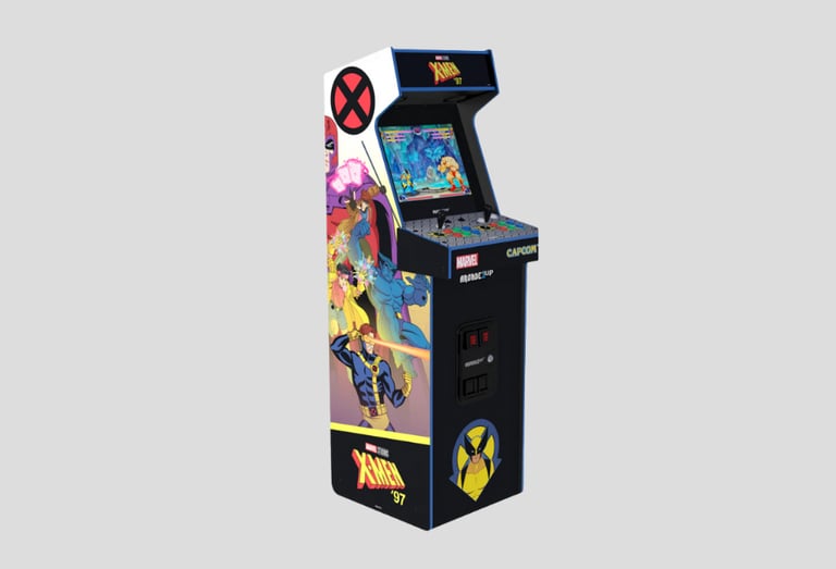 Retro stiliaus arkadinis aparatas su keliais legendiniais žaidimais. Puikus pasirinkimas komiksų ir klasikinių žaidimų fanams, norintiems grįžti į tikrą arkadų erą.